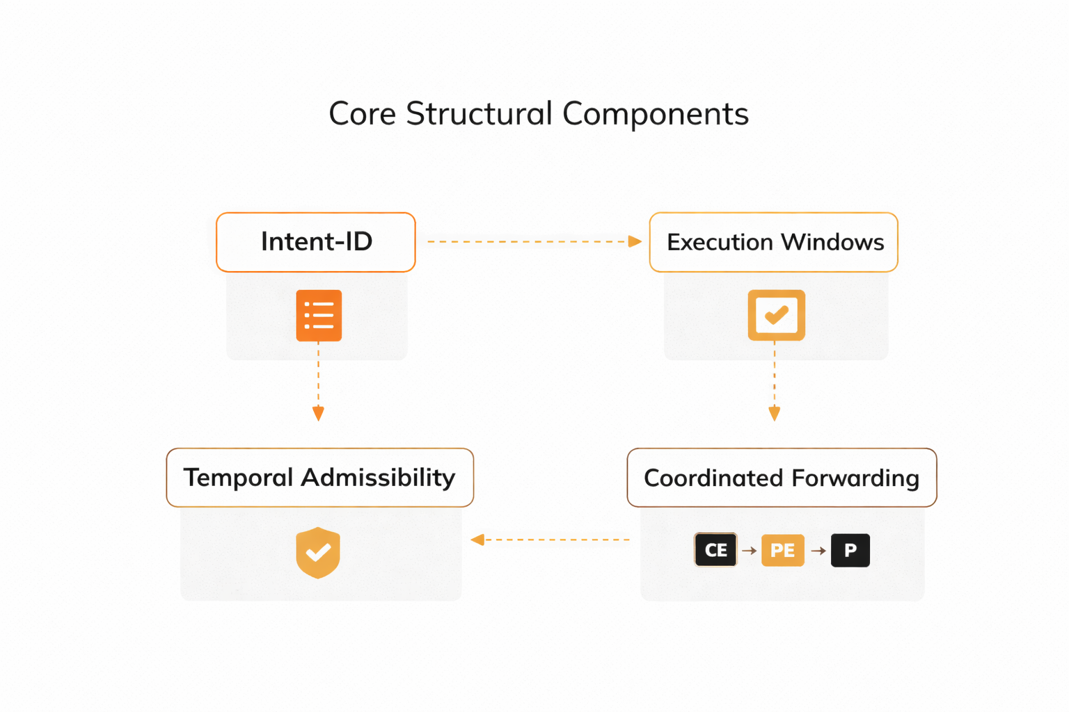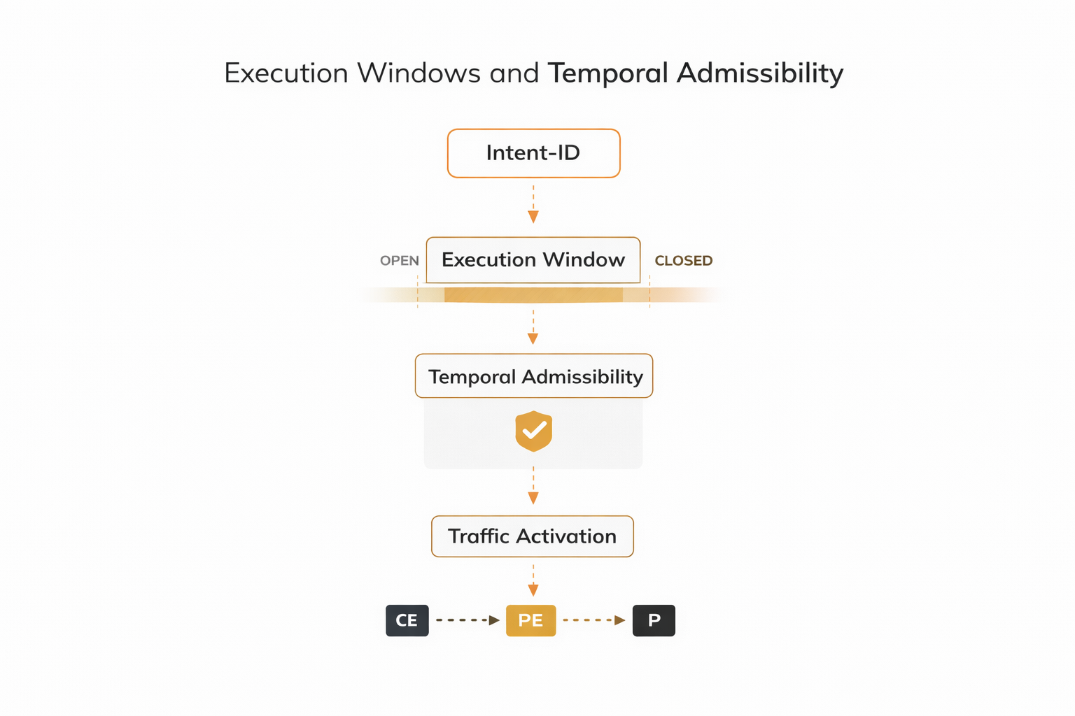 Intent-ID, execution windows, temporal admissibility, and coordinated forwarding together define the operational discipline that governs traffic activation across the network.